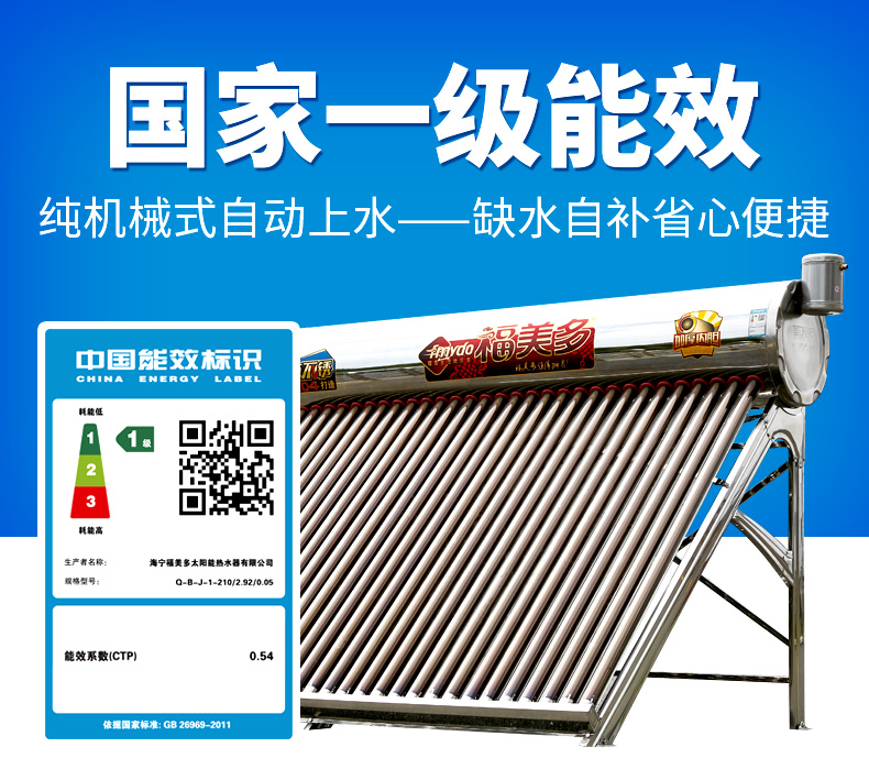福美多太阳能热水器全自动纯机械式无电自动上水广东广西云南海南