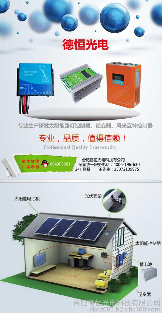 合肥德恒光电科技有限公司是安徽省高新技术企业,是集科工贸于一体的综合性集团公司。公司致力于为国内外企业和家庭提供**的太阳能控制器、发电系统控制器、风光互补控制器等,控制器年生产能力超过百万台,拥有自己独立光伏系统开发实验室,已与中国科大、合工大等知名院校建立产学研合作关系。拥有自己独立光伏系统开发实验室,并与国内外知名大学、实验室共同建立了产学研一条龙的产品开发模式。