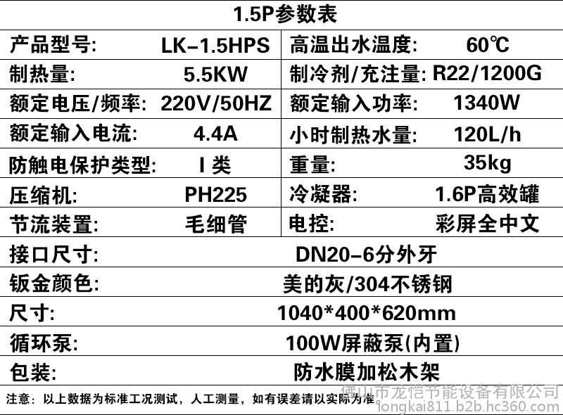 龙恺LK1.5HPS 全国联保家用空气能热水器家用空气源热泵机