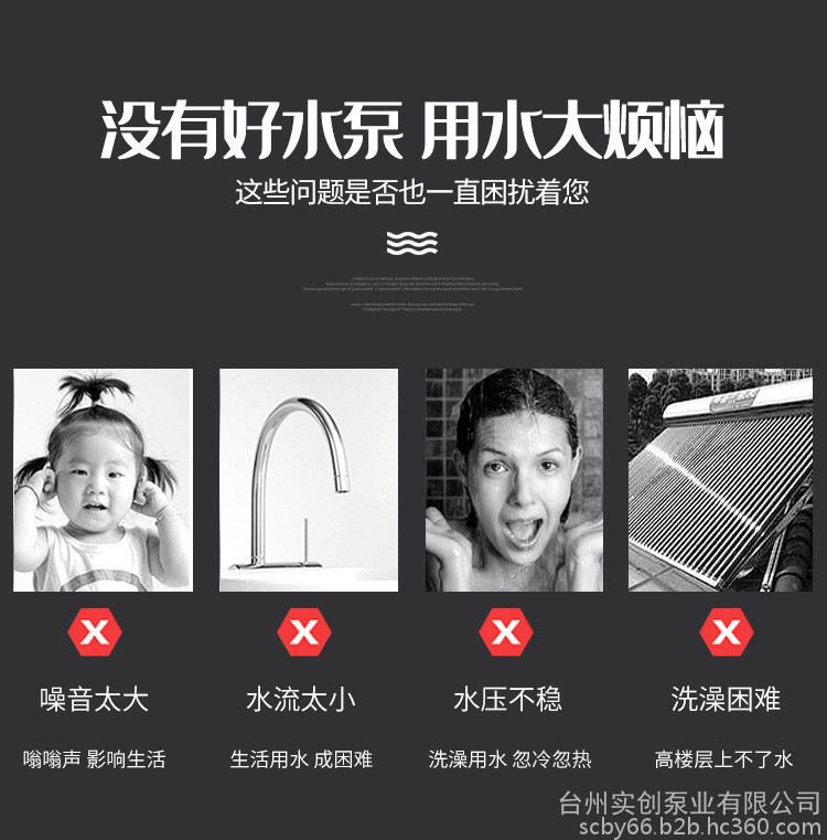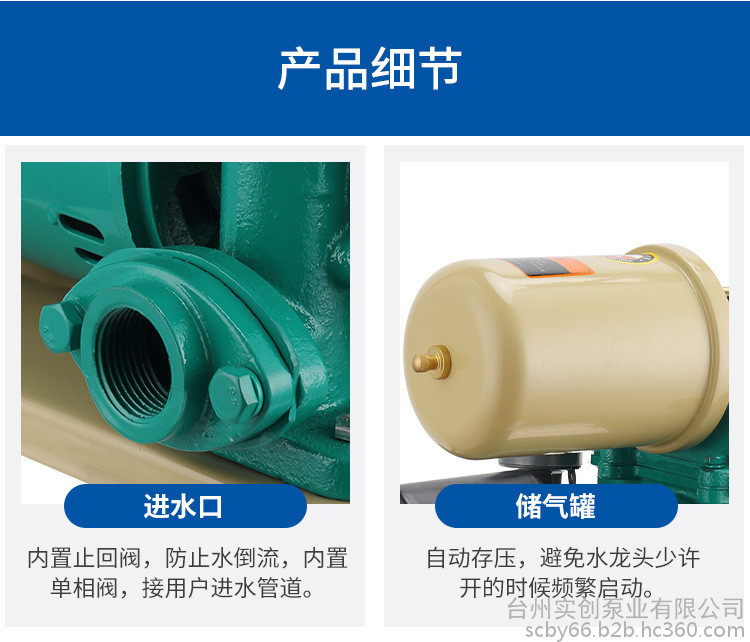 实创泵业HB-300 家用智能全自动增压泵冷热水自吸泵自来水管道加压泵井用抽水泵太阳能加压水泵