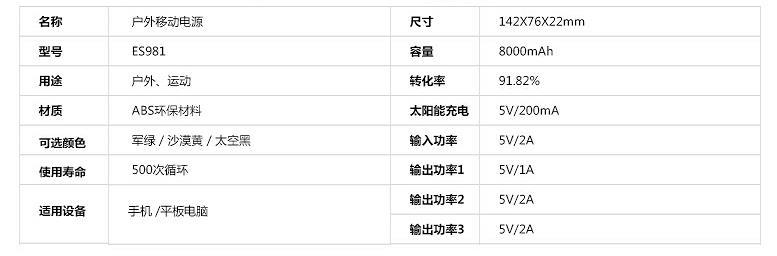 | 类型 | 太阳能移动电源 |