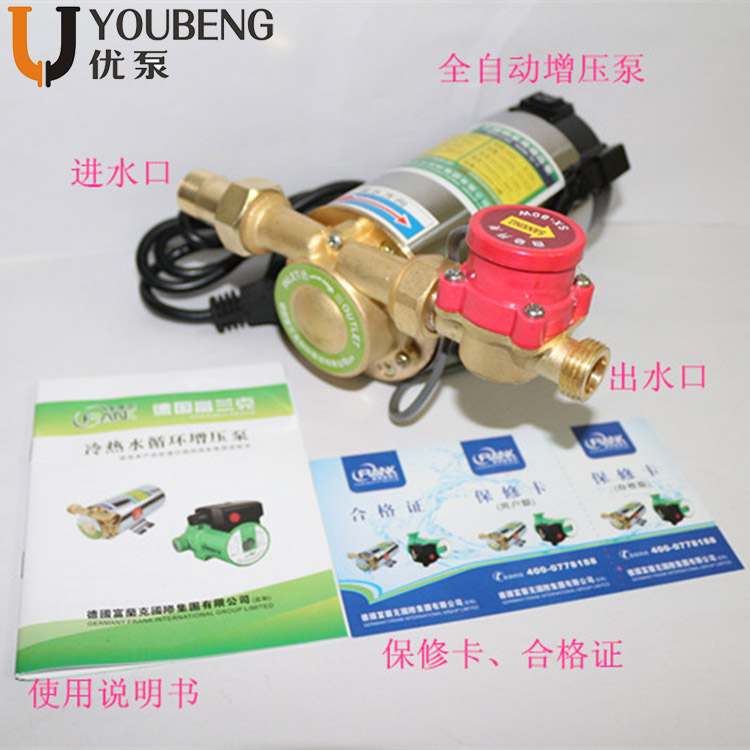 此款增压泵是100W 最高12米扬程。对比90W的加压效果更好,水流改善更明显,能让你洗澡更舒适;还可以满足小户型自来水增压!!! 100%全铜电机!现低价销售,只求销量!!